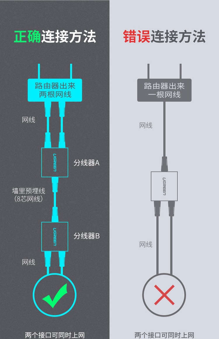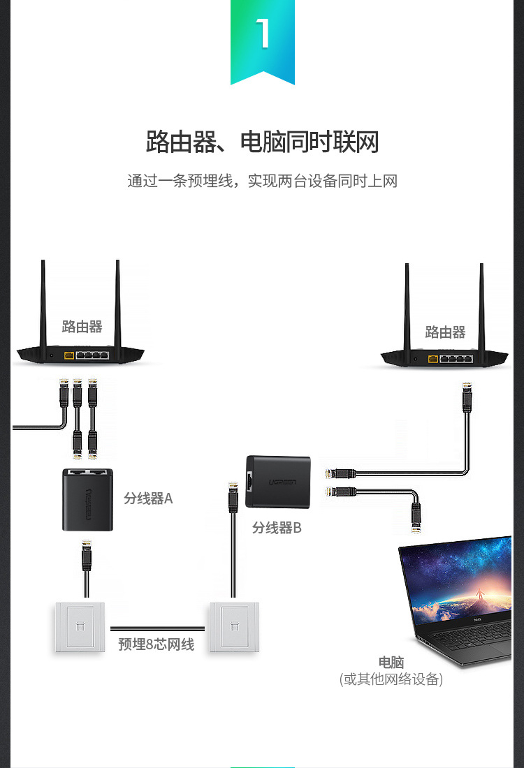 搶先評價 “綠聯 RJ45 網路線 分線器 一條網路線傳送兩個 port 訊號 一組”